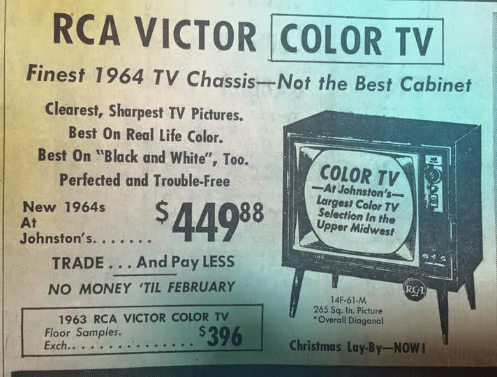 By the mid 1960s, RCA Victor was promising the future of home entertainment with its Color TV sets. But my grandparents were not part of mainstream culture. They didn’t have a television set nor did they have cool stuff like a record player. They did have a radio, one radio in each household, though my sister and I weren’t allowed to touch them. Occasionally, they might turn it on for 15 minutes at lunch time to listen to the news. I remember the first time I told my children that story and finished with, “I think that’s how I got my artistic abilities. There was nothing else to do at their houses except use my imagination to entertain myself.” You would have thought I had told them there was no electricity, running water, or indoor toilets. And then I would throw in, “that wasn’t so bad, my uncle in Westport, Indiana was still plowing his fields with a horse.” Again, mouths agape.